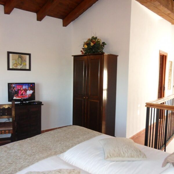 Luxury room on the first floor with a double bed, bathroom, flat-screen TV and air conditioning.